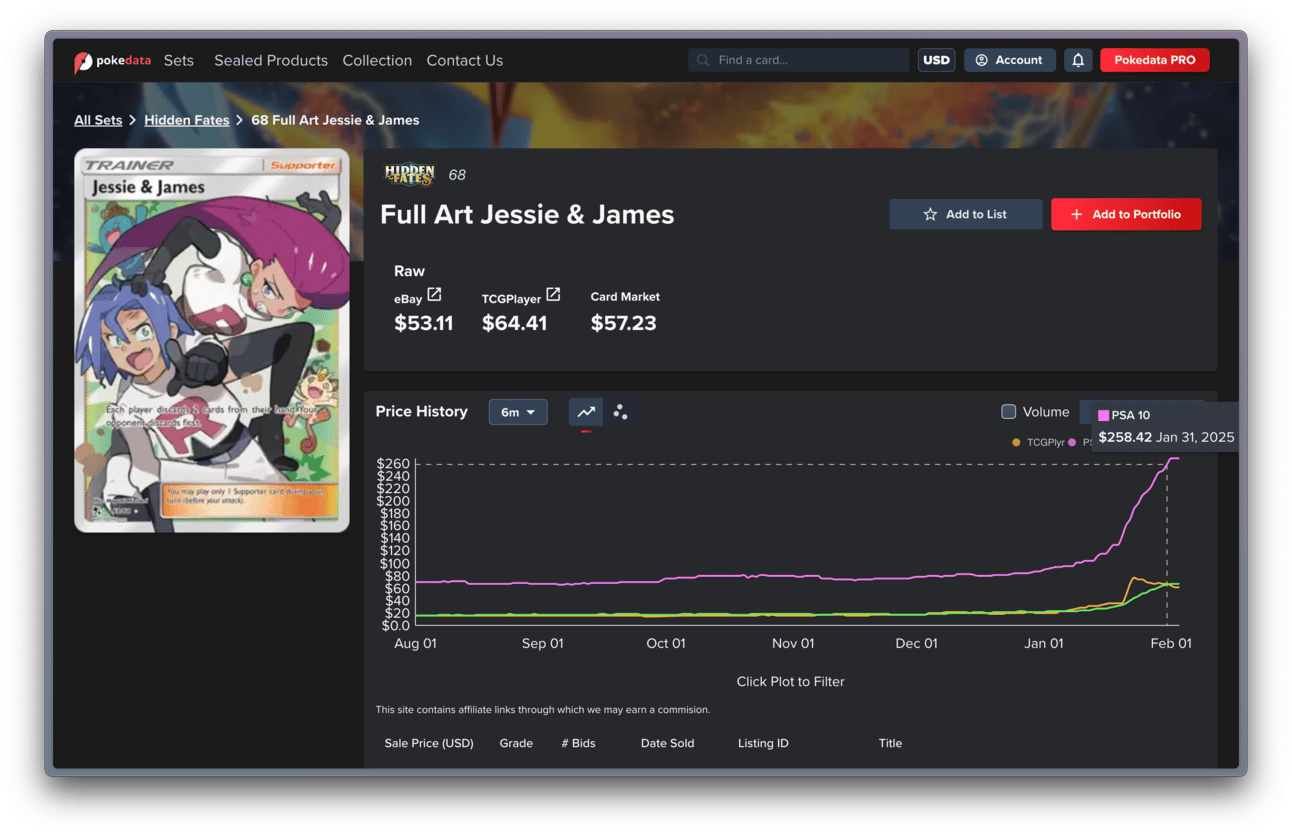 The Full Art Jesse & James card was selling for only about $20 at the beginning of January 2025.