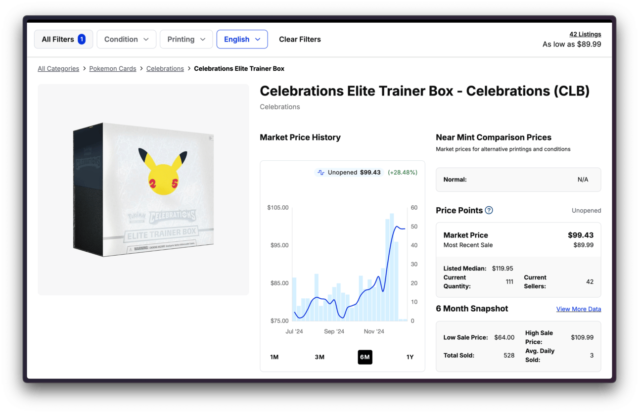 But, in the past few weeks, we’ve suddenly seen a surge in price for Celebrations ETBs on TCG Player.